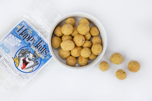 Leslie G. (Yelp Review)We all love our pups and want to treat them to the best. Well I am glad I found Happy Tails Barkery. I bought the Bacon Cheesy Bites for my little girl and she just loved them. She is small girl and the bites might have been a bit big for her, so I cut them after she struggled a bit. That sure didn't deter her for wanting more. You can feel good about giving them grainfree, preservative free and 100% USA sourced ingredients.